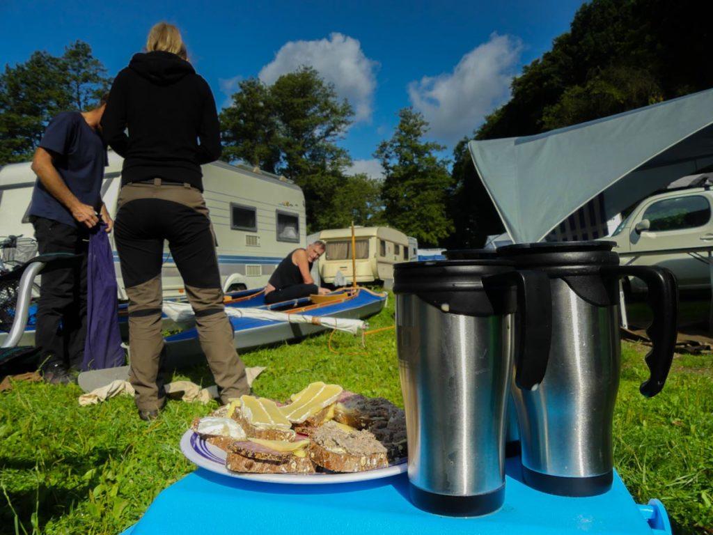 Früh am Samstagmorgen kann ich bereits die Ersten beobachten, wie sie ihre Faltboote startklar machen. Neben den Kajakfaltbooten gibt es auch eine Faltbootjolle vom Typ Klepper Passat sowie einige Festrumpfkajaks.