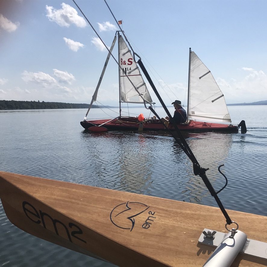 em² wird verschiedene Segelkajaks und Segelcanadier zum Probesegeln mitbringen. Wenn ihr Interesse am Kanusegeln habt oder ein Kanu/Kajak besitzt, das ihr besegeln möchtet und euch anschauen wollt, wie das funktioniert, dann ruft einfach an und vereinbart einen Termin zum Probesegeln oder für die Beratung während dieser Woche. So zum Beispiel unseren Favoriten, den Summerwind Kill Segelkajak Zweimaster.